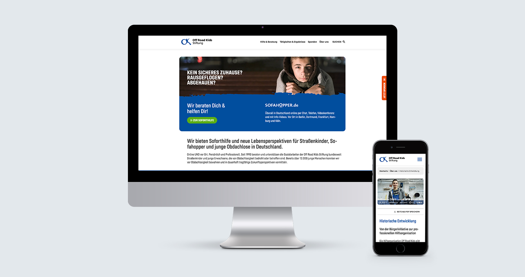 Für Off Road Kids arbeiten wir seit unserer Gründung im Jahr 2002. Wir tragen gerne unseren Teil dazu bei, Straßenkindern in Deutschland nachhaltig zu helfen. Dafür setzen wir unsere Expertise in allen Bereichen ein. Von der Entwicklung und laufenden Erweiterung des Corporate Designs, über die Gestaltung von Broschüren, Flyern und Anzeigen bis hin zum heute entscheidenden Faktor – der optimal gestalteten digitalen Präsenz.